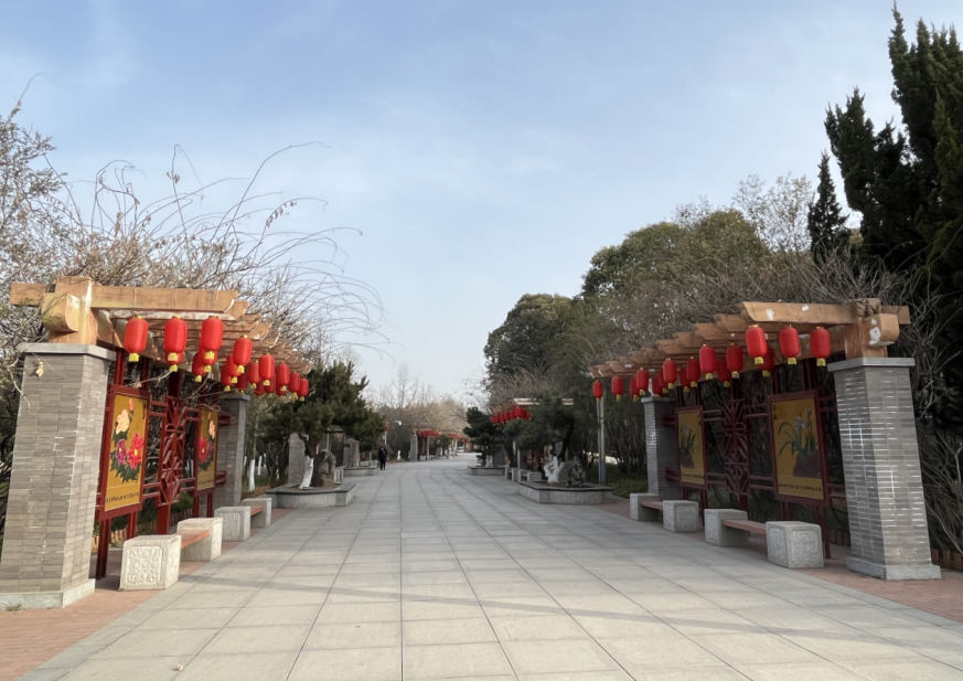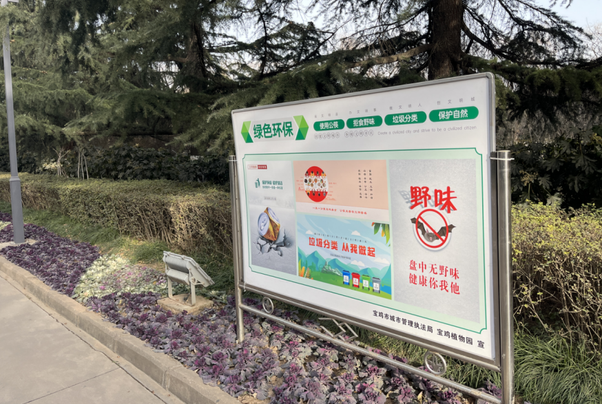 在宝鸡植物园内,记者看到各种以红色为基调的亮化装饰带来了浓厚的节日气息,处处洋溢着浓浓的年味儿。一眼望去,景区内环境干净整洁,“垃圾分类从我做起,保护环境,爱护清洁……”宣传标语随处可见。