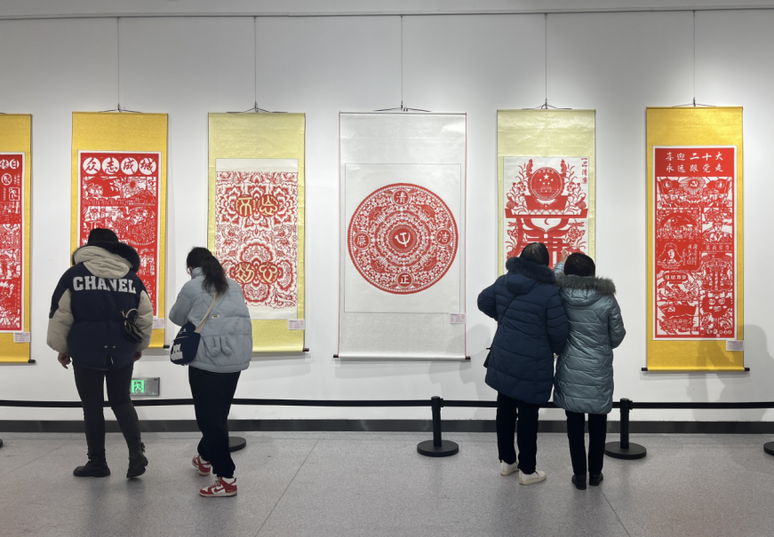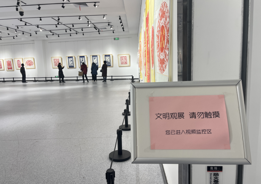 在群众艺术馆内,“非遗里的清廉”宝鸡优秀剪纸作品展暨2023迎新春民俗剪纸展在这里展出,一幅幅精美剪纸作品吸引了游客们驻足观看,即便好奇心强的孩子们,也能在家长的带领下文明观展,不触摸展品、不大声喧哗。