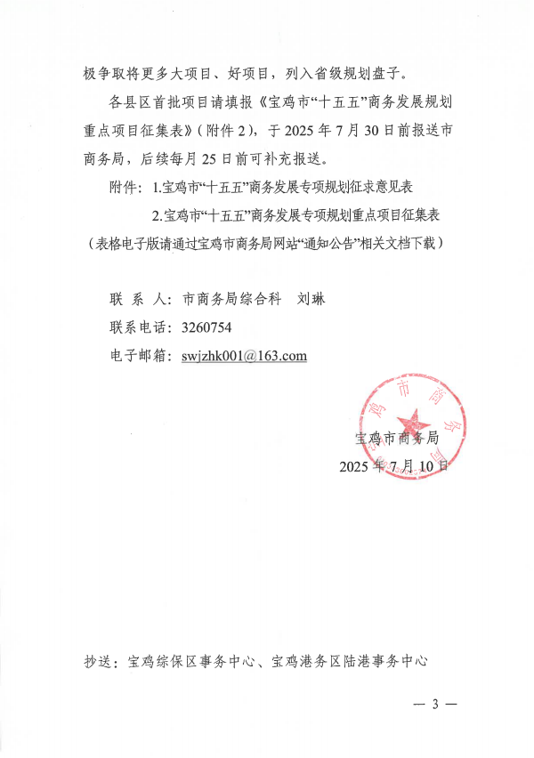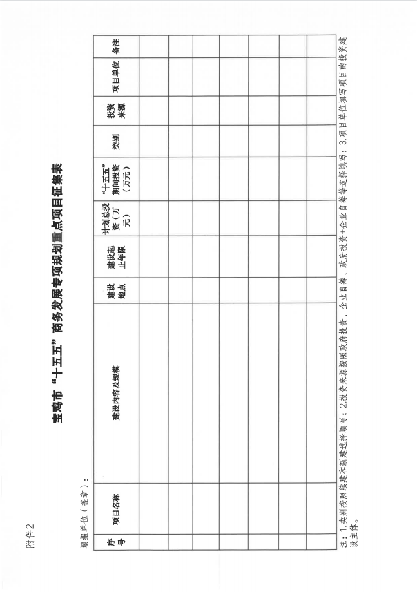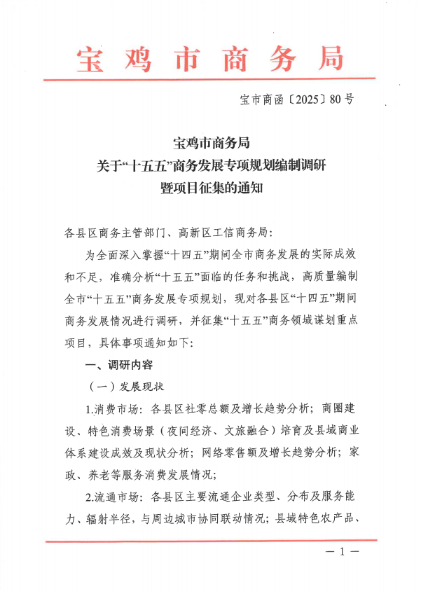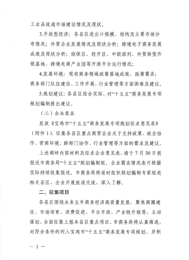 宝鸡市商务局关于“十五五”商务发展专项规划编制调研暨项目征集的通知