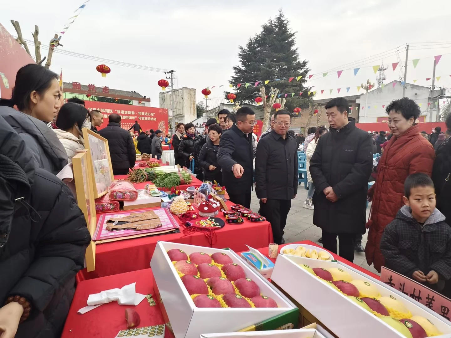 在活动现场的非遗展示区,一幅幅精美的木版年画不仅展现了非遗文化的独特魅力,也让人们感受到了传统年味的浓厚底蕴。农产品展销区,来自各村的草莓、大葱、苹果和土鸡蛋等特色产品更是让群众摩肩接踵,争相采购。